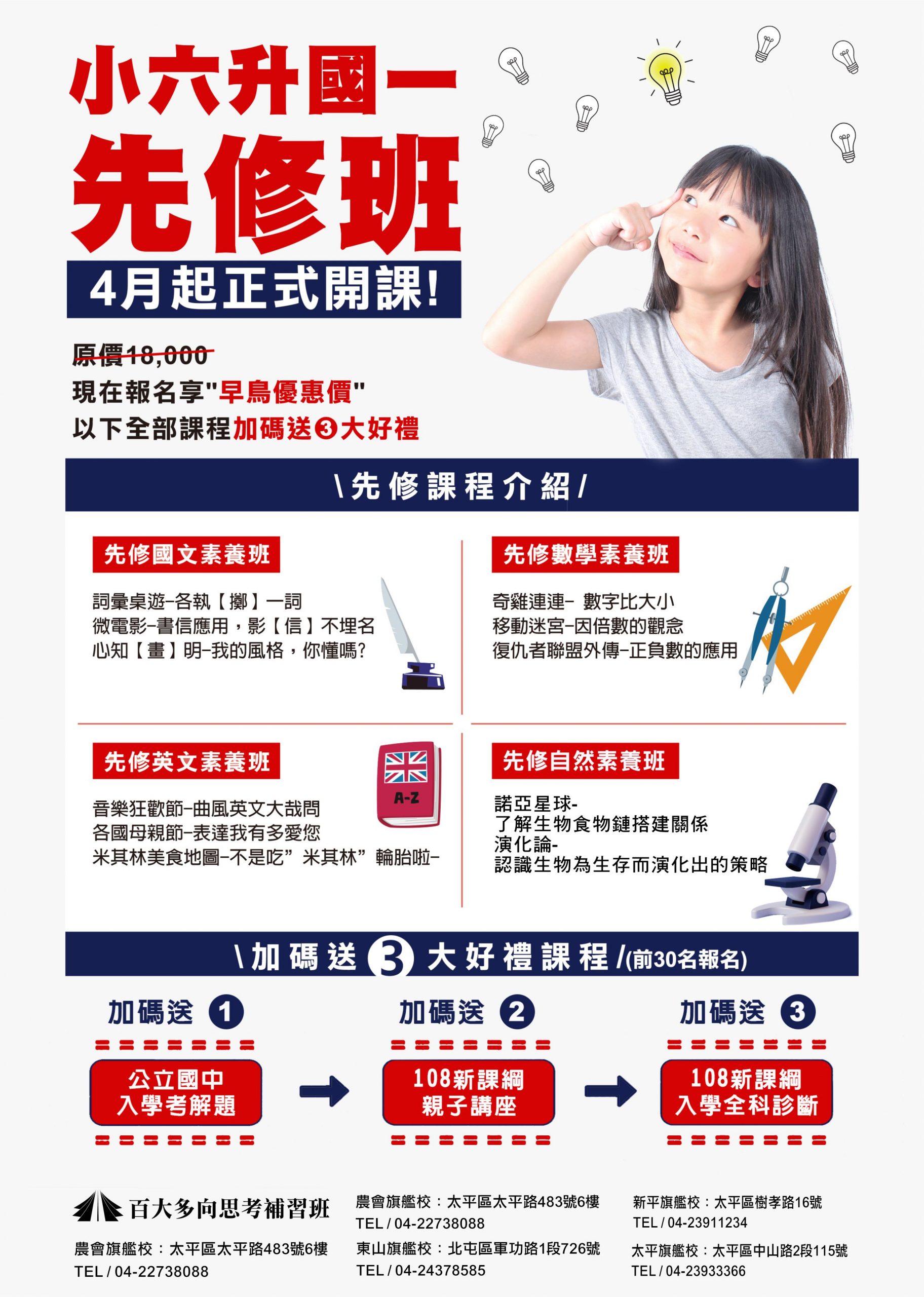 2026-02-28 置頂文章 115年小六升國一先修AI機器人營隊 小六升國一 好康優惠 115年小六升國一先修AI機器人營隊 ◍對象 : 小六升國一 ◍時間 : 115年4月~6月 ◍課程 : 國文、英文、數學、自然、閱讀素養 READ MORE . 作者: 作者: mymath01 分類: 國中課程, 國小課程, 最新公告, 本班公告, 課程資訊 小六升國一 好康優惠 115年小六升國一先修AI機器人營隊 ◍對象 : 小六升國一 ◍時間 : 115年4月~6月 ◍課程 : 國文、英文、數學、自然、閱讀素養 READ MORE . 小六升國一先修AI營隊 115年4-6月 國一先修課程搶先報名中 分類: 國中課程, 國小課程, 最新公告, 本班公告, 課程資訊 上一篇文章 私中特訓計劃 相關文章 <<防疫優先 家長安心>> 112大坑春吶 國一、國二培優課程 期末診斷報告