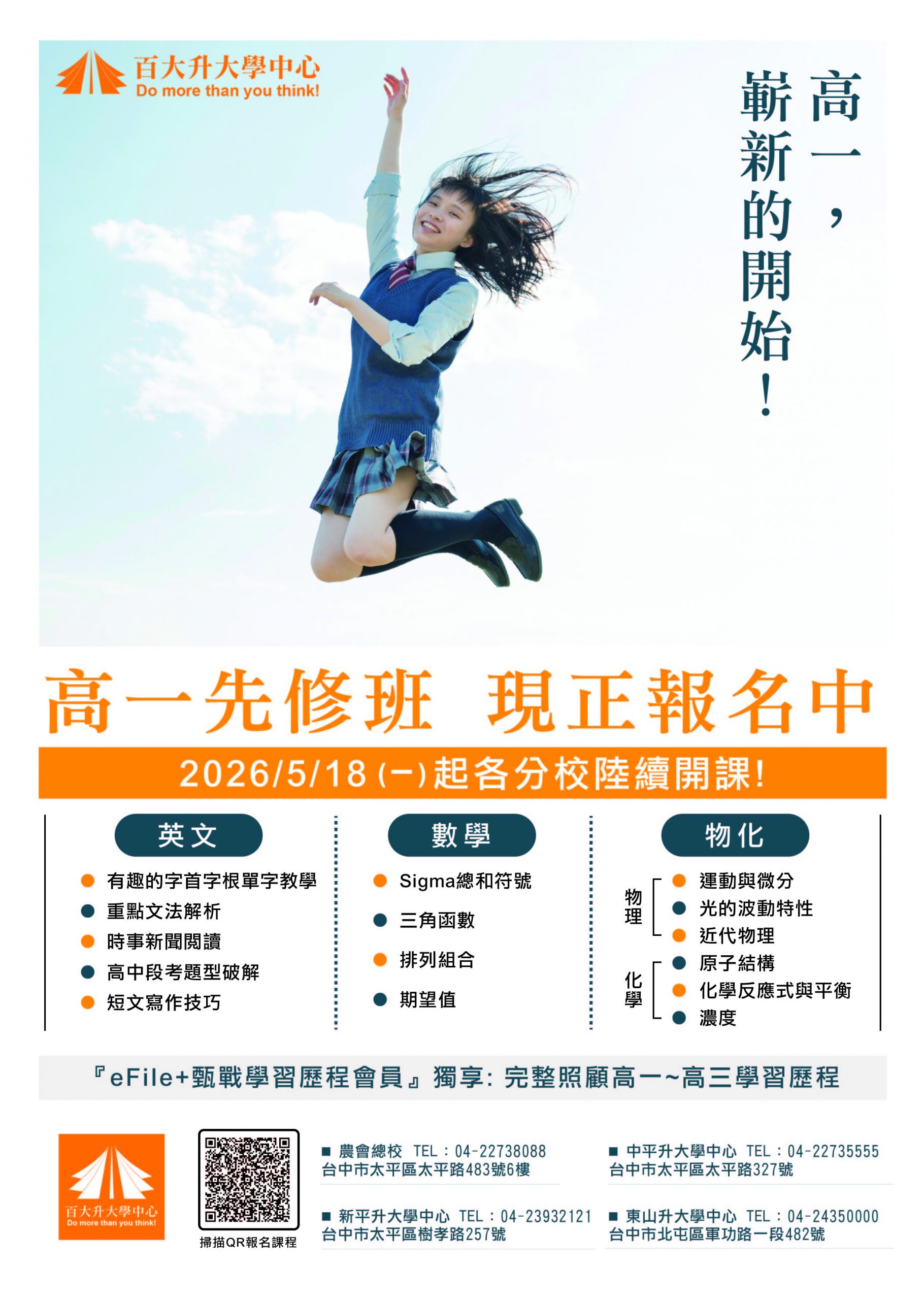 2026-03-28 115高一先修 本班公告 現正報名中 READ MORE . 作者: 作者: mymath01 分類: 本班公告, 課程資訊, 高中課程 本班公告 現正報名中 READ MORE . 國三升高中 即日起 想瞭解課程